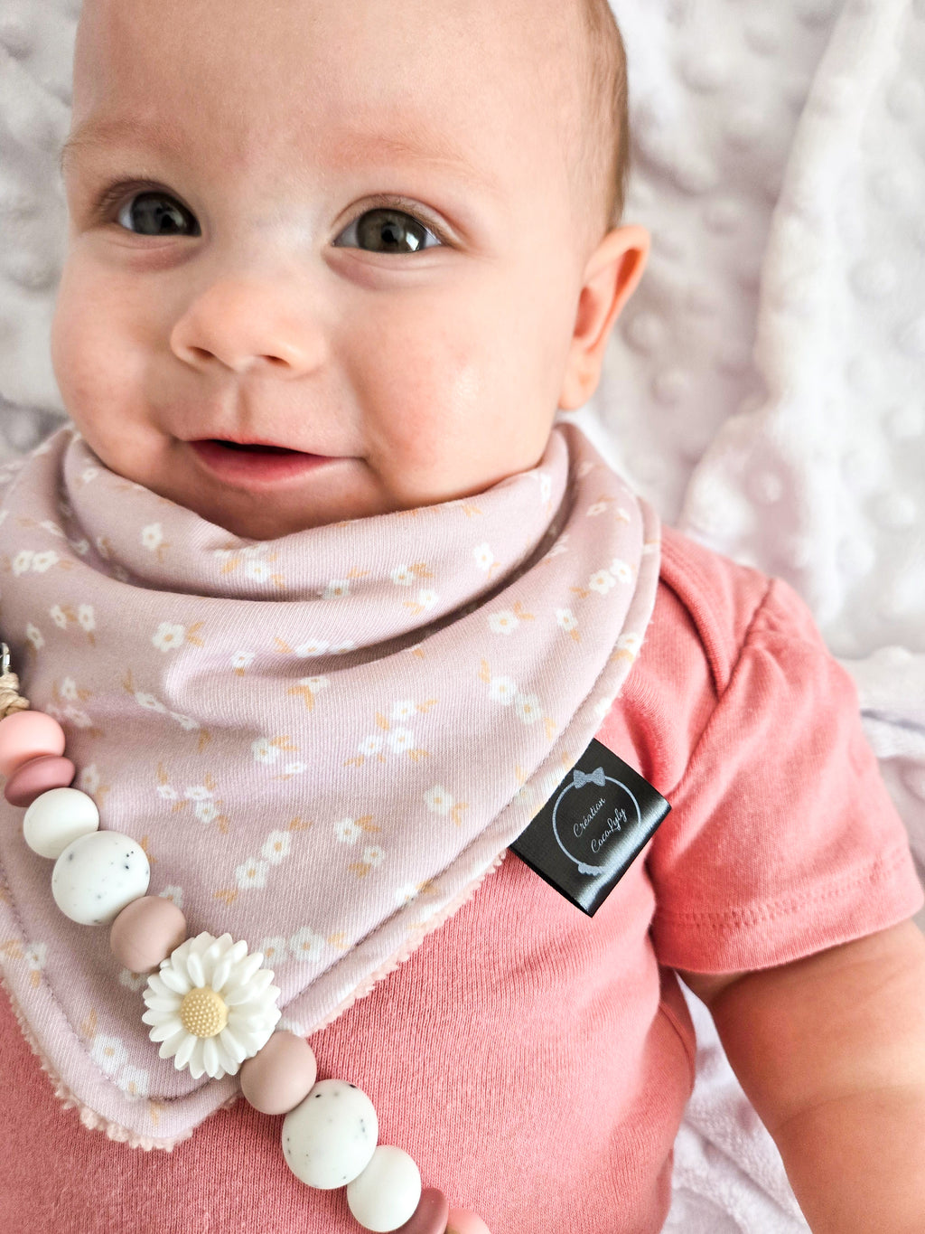 Bavoir petites marguerites sur fond rose ajustable Prix régulier $14.99